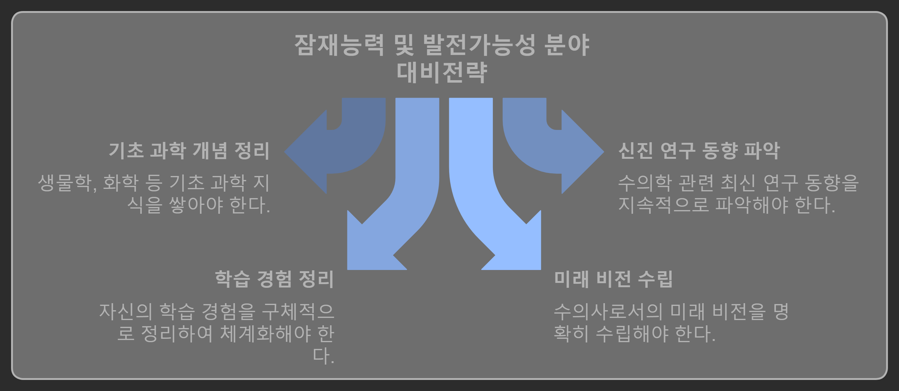 | [수의예과 면접] 핵심 주제와 답변 전략: 완벽 가이드 (5) | 2024.10.24 |
