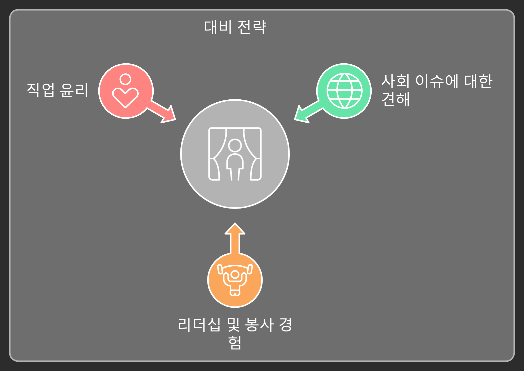 전북대 문항제시형 면접은 예비 수의사로서의 인성과 잠재력을 종합적으로 평가합니다. 폭넓은 지식과 깊이 있는 사고, 그리고 확고한 직업관을 바탕으로 준비한다면 좋은 결과를 얻을 수 있을 것입니다.